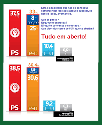 Pretendem ignorar a derrota escrita nos 28% dos votos, e procurar a vitória nos escassos 4 pontos de vantagem do PS, S de Seguro. Que por sua vez pretende fazer crer que são suficientes para reclamar legitimidades que não se vislumbram e para os festejos patéticos a que assistimos. Realça o pior resultado de sempre da direita, mas quer ignorar que, sobre o ponto mais baixo de sempre do adversário/parceiro, não conseguiu mais que uns escassos 4 pontos, menos do que os 5 que perdeu desde as autárquicas, há apenas 8 meses. E que o resultado que lhe assegura esta vitória está praticamente ao nível do que, há cinco anos, com Sócrates, se traduzira numa das maiores derrotas do partido.