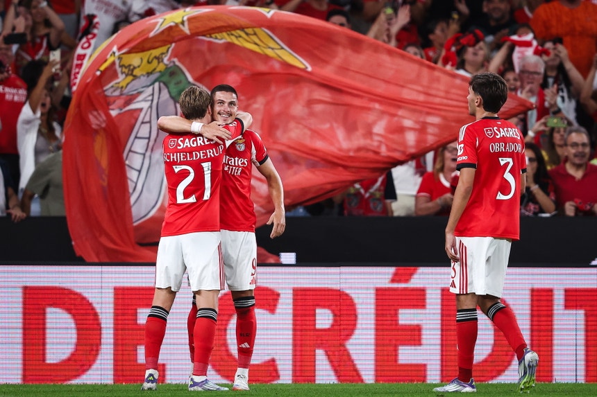 E entrou bem. Logo aos 5 minutos, cinco minutos de domínio absoluto, na primeira oportunidade, Schjelderup marcou. E o golo mudou alguma coisa. Em relação aos 5 minutos iniciais mudou tudo.